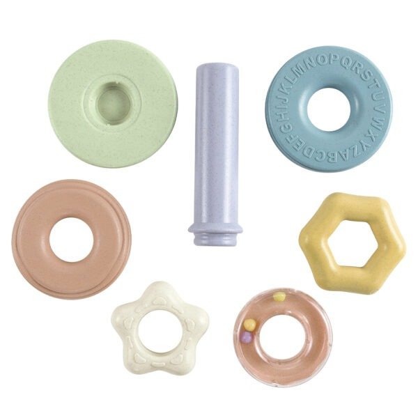 Con 7 piezas de distintos tamaños y colores pastel, este juguete estimula la creatividad, la resolución de problemas y el reconocimiento de formas.